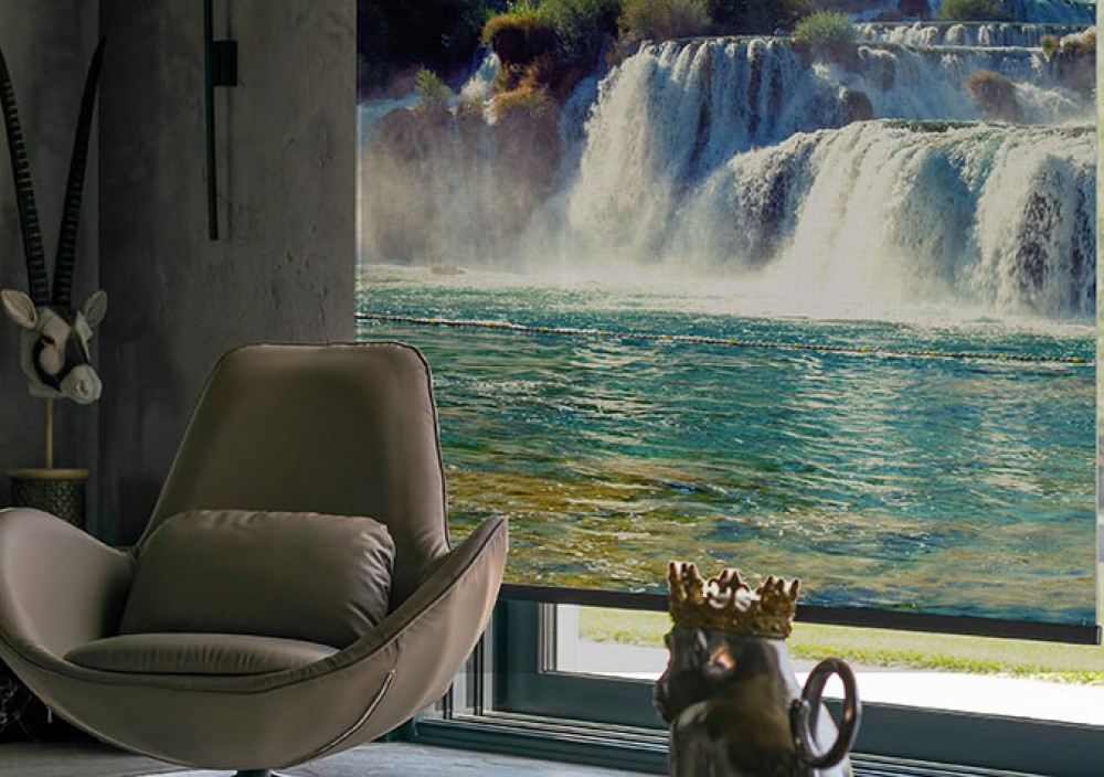 Wodospad w salonie: Ewa z Gdańska chciała czegoś wyjątkowego do swojego nowego salonu. Wybór padł na fotoroletę z wodospadem. "Goście są zaskoczeni i zachwyceni. To świetny punkt rozmów" – mówi Ewa z uśmiechem.